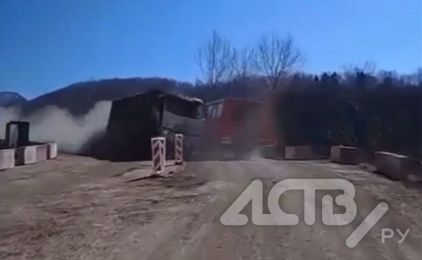 - 13:31 На Холмском перевале разорвало самосвал, вылетевший с дороги