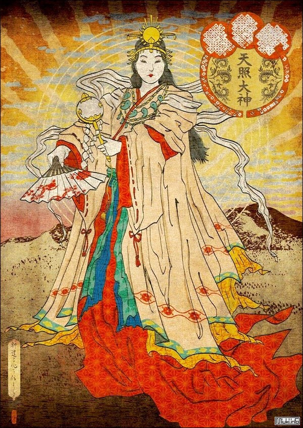 Богиня солнца Аматэрасу и зеркало тесно связаны в японской мифологии: зеркало Ята но Кагами — одно из трех священных сокровищ, врученных императорскому роду, оно символизирует её как воплощение божественного солнца, власть и чистоту, а в мифе было использовано для выманивания Аматэрасу из пещеры, олицетворяя свет и истину. Зеркало, как символ, отражает её сущность, а также служит оберегом и знаком божественного происхождения императоров.