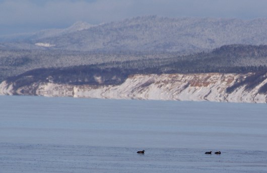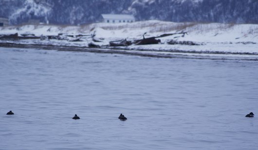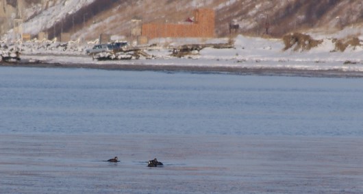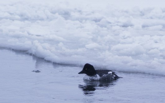 с этим гоголем я подружился неделю как...Мужественно переносят пургу и... наслаждаются её концом. Надеются (как и я) что солнышко и море ещё постоят...