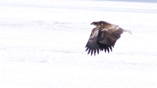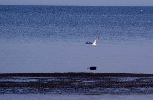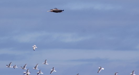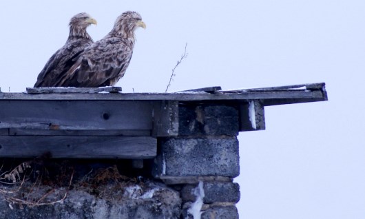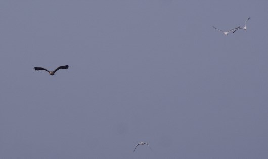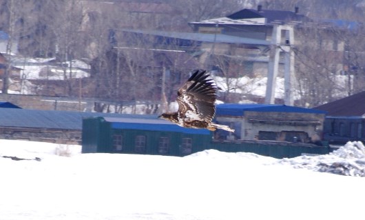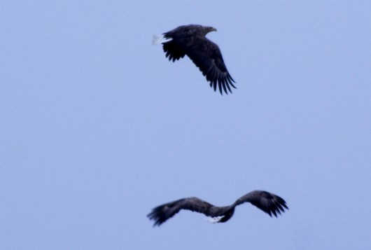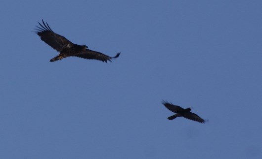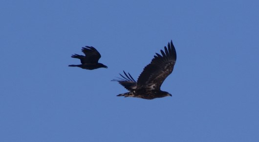 местные вороны, конечно, пытаются оспорить главенство в воздухе, но в стаях орланы смотрят на них свысока...