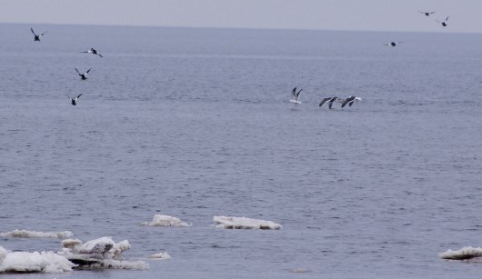 Прошлые годы они летели двумя неделями раньше (начало), но этот год залив то открывался, то закрывался льдами...выжидали.
