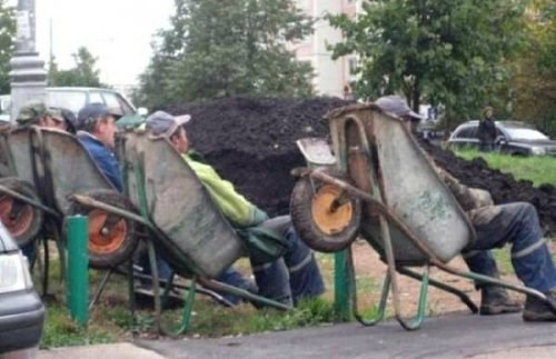 Фотоподпись: уже давно бы раскидали , но ждем начальника и пресс службу, для красивого кадра.