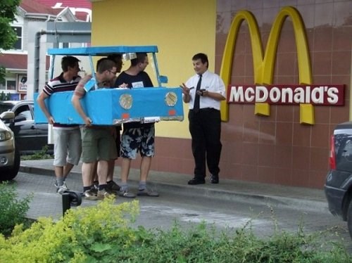 В Макдональдсе акция, приведи с собой ещё троих дебилов как ты, один гамбургер за двойную цену.