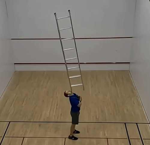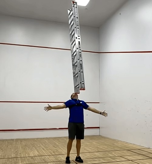 Рекордсмен 19 минут удерживал лестницу на подбородке