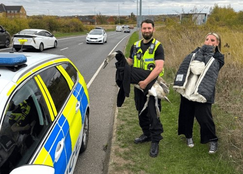 Полицейские «арестовали» лебедя, устроившего беспорядки на дороге