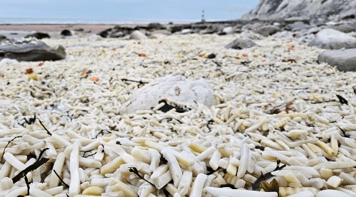 Пляж оказался завален картошкой-фри и луком