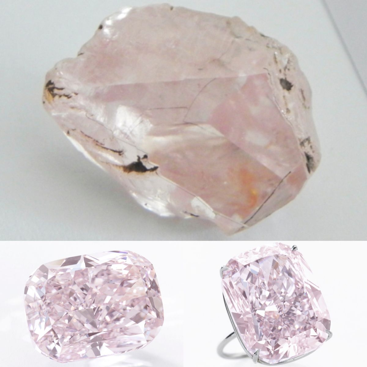 Это был насыщенный розовый бриллиант весом 24,78 карата, некогда принадлежавший легендарному нью-йоркскому ювелиру Гарри Уинстону. Геммологи из GIA отметили его принадлежность к редчайшему типу IIa и огромный потенциал: при переогранке он мог достичь безупречной чистоты.
