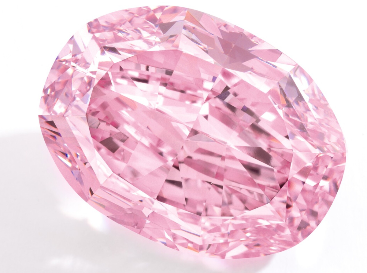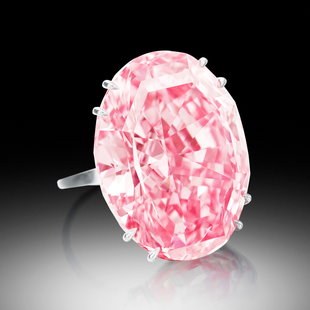 Овальный гигант весом почти в 60 карат обладает фантазийным ярко-розовым цветом невероятной чистоты. Это крупнейший в мире бриллиант такого редкого и сочного розового оттенка, что делает его не просто камнем, а иконой в мире драгоценностей.