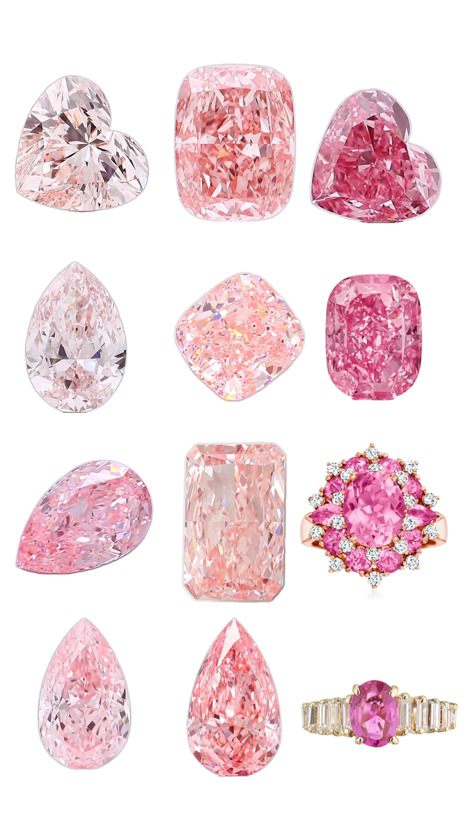 Моя любимая часть - оттенки розовых бриллиантов! Вы только посмотрите, какая уникальная палитра одного цвета! некоторые камни находятся на тончайших цветовых гранях, как, например,