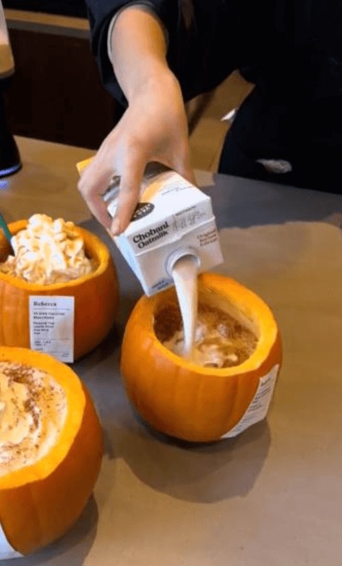 Впрочем, это даже не посуда. Это небольшие выдолбленные тыквы, и люди требуют, чтобы напитки им наливали именно в такую тару — якобы это создаёт невероятно милое и уютное осеннее настроение.