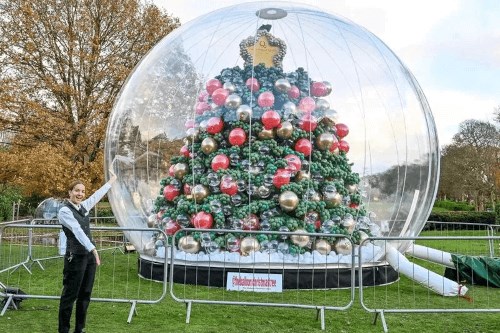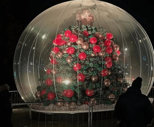 В этом уверены в отеле «Moor Hall Hotel and Spa» (Бирмингем, Англия), перед которым теперь красуется 7,6-метровая праздничная ёлка, созданная из 100000 разноцветных воздушных шаров. Группа из 20 добровольцев усердно трудилась 5 дней, чтобы собрать рождественское чудо, которое для сохранности укрыли под прозрачным куполом. Нужно, чтобы все шарики оставались в целости.