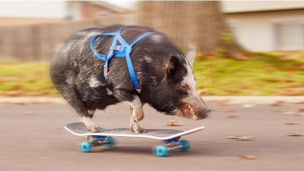 Свин Норберт научился кататься на скейтборде и попал в Книгу рекордов Гиннесса