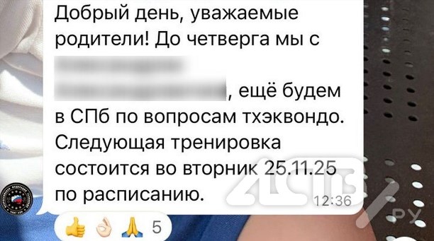 Во второй половине ноября тренер написал в группу, которую организовали в мессенджере, видеоотчёт о соревнованиях, предупредил, что следующая тренировка будет 25 ноября и оповестил родителей о необходимости покупки учебного пособия за 1600 рублей для всё той же аттестации, добавила островитянка.