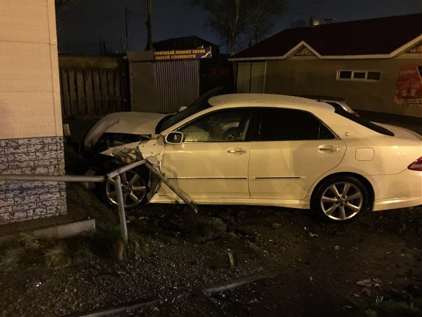 От удара Toyota Crown вылетел на обочину и врезался в постройку рядом с магазином "Беседа". Toyota Corolla Runx осталась на проезжей части. Оба автомобиля получили серьезные повреждения.