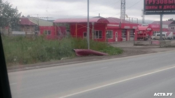 Сегодня, 29 июля примерно в 10:15 в Южно-Сахалинске на Холмском шоссе у поворота на Ласточку листы железа едва не убили работников дорожной службы.