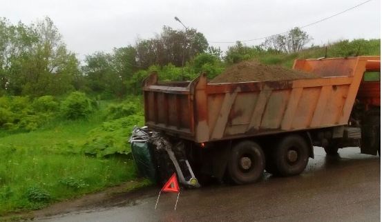 Сегодня, 19 июня примерно в 11.00 в Александровске-Сахалинском произошло странное ДТП. КамАЗ с песком буквально смял «Дайхатцу Терриос».