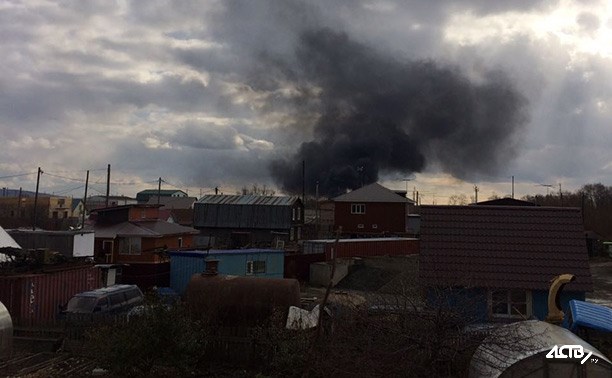 Сегодня днем всех въезжающих в Южно-Сахалинск со стороны Троицкого встречает большие черные клубы дыма. Как рассказали ASTV.RU очевидцы, пожар распространяется в районе психбольницы.