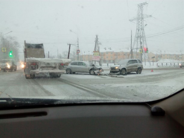 ДТП произошло сегодня утром в Южно-Сахалинске. В Октябрьском столкнулись Toyota Camry и Suzuki Escudo.