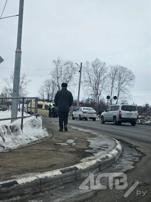 Очевидцы сообщают о последствиях серьёзного ДТП в Смирных. Днём 4 февраля инкассаторский автомобиль столкнулся с локомотивом, который проводил маневровые работы на железнодорожных путях.