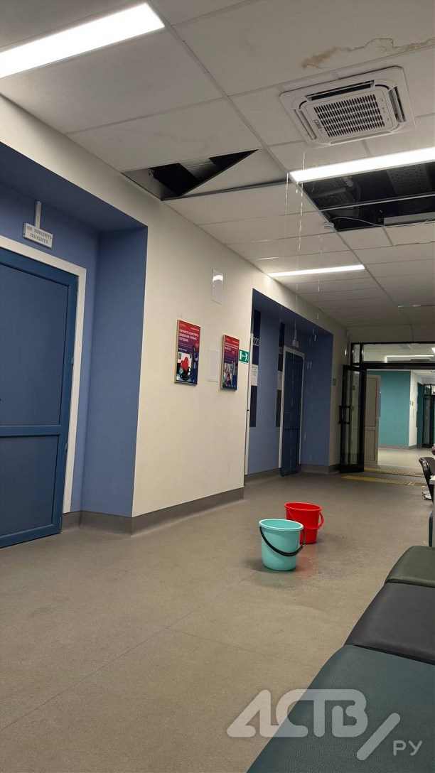 В региональном министерстве здравоохранения подтвердили, что после дождя в поликлинике на верхнем этаже произошла течь.