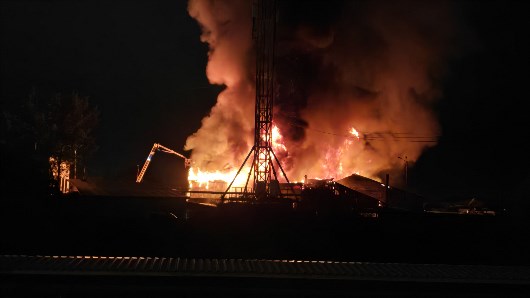 По словам очевидцев, строение горит открытым огнём, на месте работают несколько пожарных расчётов. По словам местных жителей, полыхает автосервис, несколько авто заперты внутри.