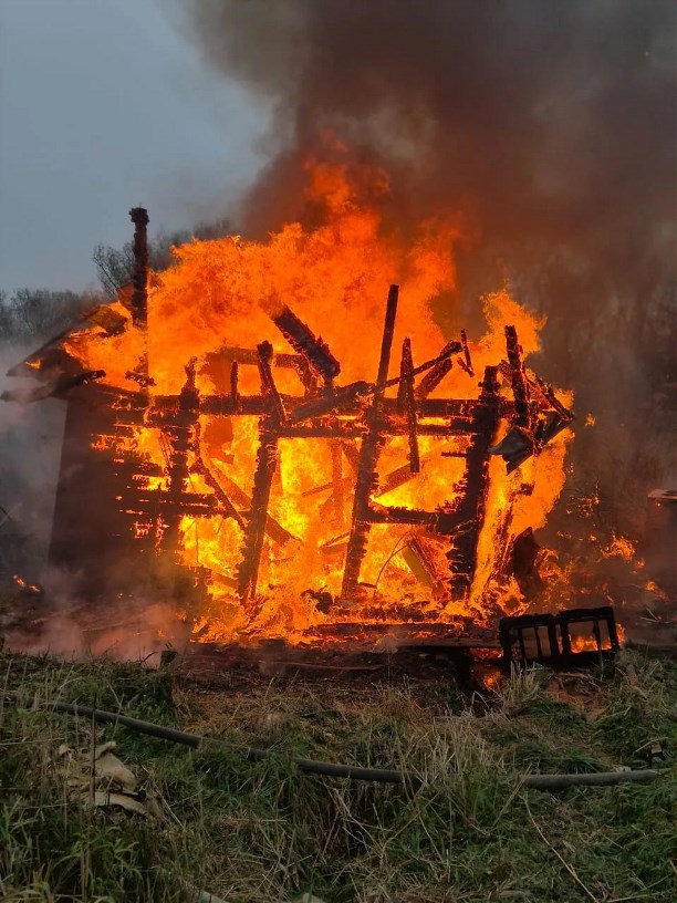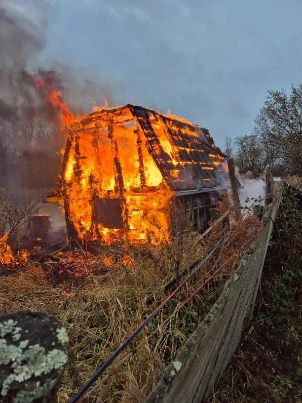 Появились кадры с места пожара в Углегорске, в результате которого пламя уничтожило дачный дом.