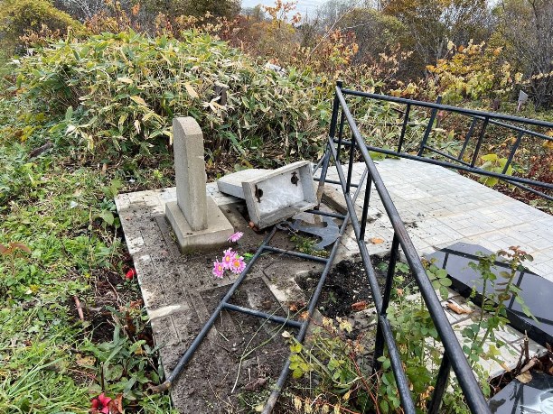 На кладбище по улице Некрасова в Холмске произошёл вопиющий случай вандализма. Неизвестные повредили несколько мест захоронения.