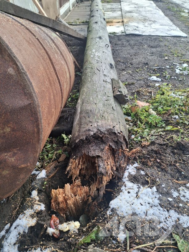 Вместе с тем состояние соседнего столба также вызывает сомнения у местных жителей. По словам свидетеля ситуации, конструкция тоже ветхая и местами прогнила.