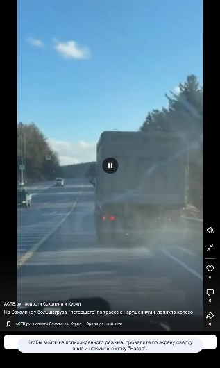 "15 ноября в 15.10 по трассе Южно-Сахалинск – Корсаков ехал большегруз, полностью загруженный и без номерных знаков. Ехал с нарушениями правил дорожного движения. Сначала для обгона выехал через сплошную линию на полосу, предназначенную для встречного движения (не успели заснять), далее ехал с нарушениями скоростного режима, а в итоге у него взорвалось колесо", - написали очевидцы.