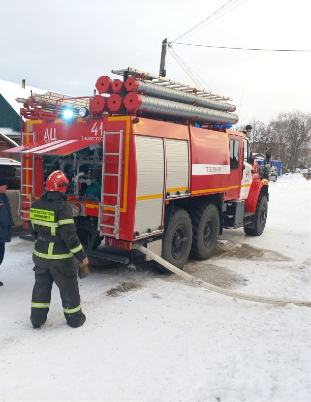 На пожар были привлечены работники пожарно-спасательной части № 41 пгт. Тымовское: 12 человек личного состава и 3 единицы техники. Причины пожара выясняются.
