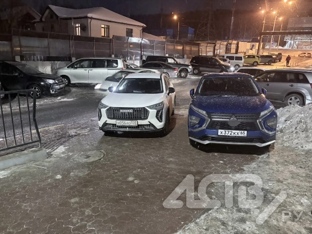 Два автохама заняли пешеходную дорожку в ЖК "Аралия" в Южно-Сахалинске. Автомобили, один из которых Haval с московскими номерами, попали на снимки очевидцев утром 29 января.