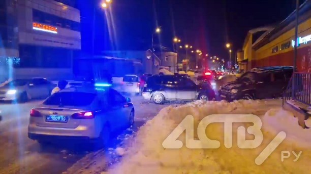 Два автомобиля жёстко столкнулись вечером 7 февраля в Южно-Сахалинске. По предварительным данным, дорогу не поделили внедорожник и кроссовер. На месте работали сотрудники ГАИ.