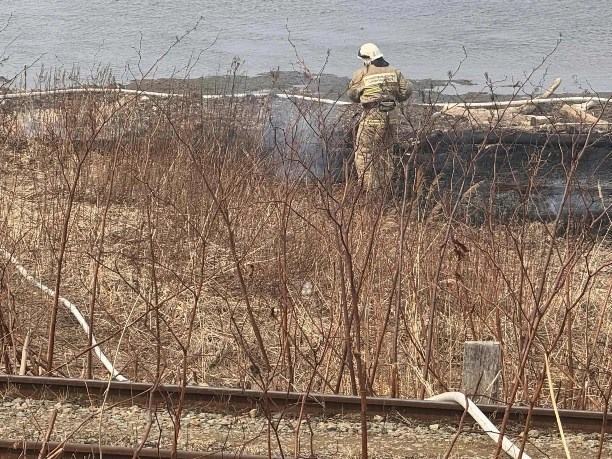 Через 11 минут огнеборцы прибыли на место происшествия. К этому времени на берегу моря горел строительный мусор, была угроза распространения пламени на сухую траву. Площадь возгорания составила 72 квадратных метра.
