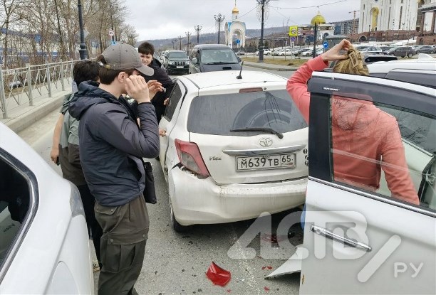 В Южно-Сахалинске днём 6 апреля произошло серьёзное ДТП. По предварительным данным, водитель легковушки не справился с управлением и разбил сразу два автомобиля.
