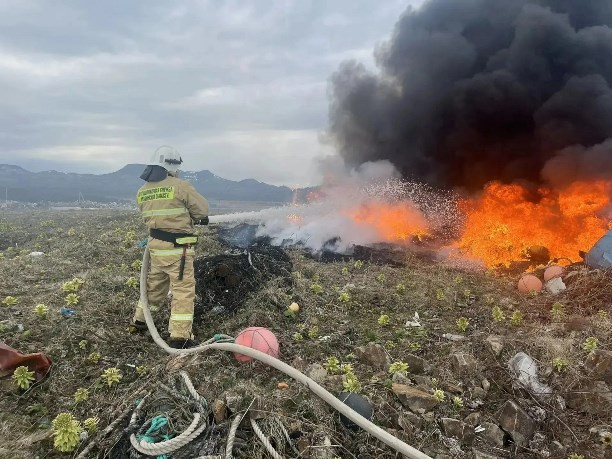 Пожарные оперативно ликвидировали возгорание на полигоне твёрдых бытовых отходов в районе Южно-Курильска.