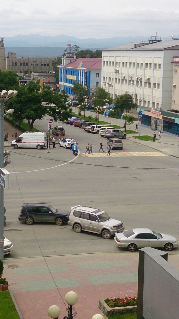 ДТП произошло сегодня, 14 августа около полудня в Южно-Сахалинске на перекрестке ул. Ленина и Коммунистического проспекта.
