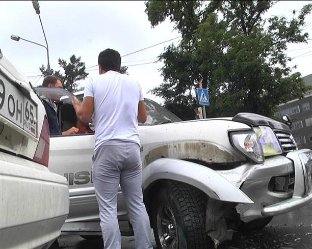 ДТП произошло сегодня, 19 августа, около полудня в Южно-Сахалинске на перекрестке улицы Сахалинской и проспекта Мира. Там столкнулись Toyota Vista и Toyota Land Cruiser Prado.