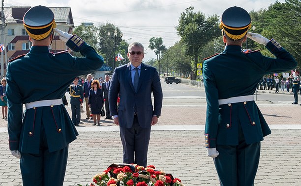 В областном центре стартовал международный фестиваль военных оркестров «Спасская башня на Сахалине». Официальные мероприятия начались с церемонии возложения цветов к Вечному огню мемориала Славы областного центра. Дань памяти воинам-освободителям Сахалина и Курильских островов отдали руководители музыкальных коллективов и представители правительства островного региона.