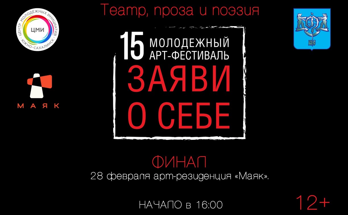 В Южно-Сахалинске пройдёт финальный тур 15 арт-фестиваля "Заяви о себе" (12+). На сцене будут представлены лучшие номера в направлениях театр, проза и поэзия. Мероприятие состоится 28 февраля в 16:00 арт-резиденции "Маяк".