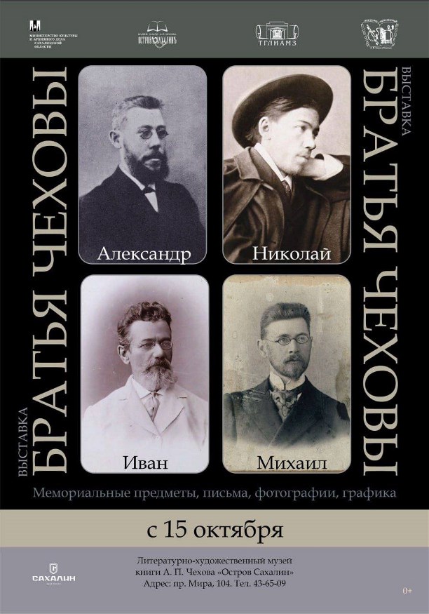 В рамках юбилейного года А. П. Чехова в музее книги в Южно-Сахалинске открывается новая выставка "Братья Чеховы" (6+), посвящённая взаимоотношениям в большой семье писателя. Проект реализован в партнёрстве с Таганрогским государственным литературным и историко-архитектурным музеем-заповедником и историко-литературным музеем "А. П. Чехов и Сахалин" при поддержке регионального министерства культуры и архивного дела.