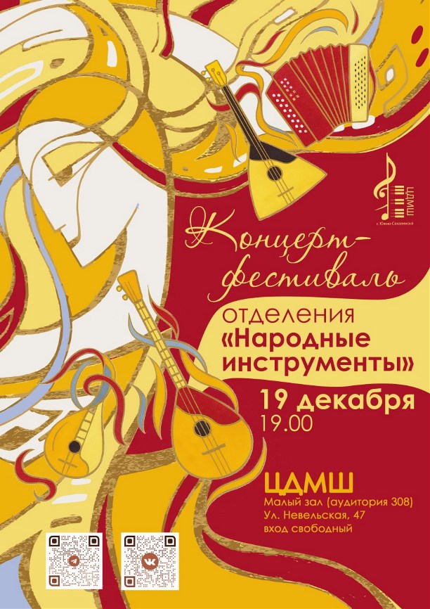 В Южно-Сахалинске пройдёт концерт народной музыки (0+) от учеников и преподавателей образовательной программы "Народные инструменты".