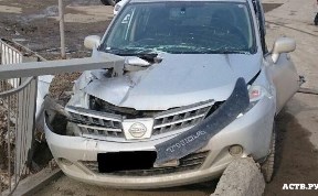 Автомобилистка протаранила ограждение моста в Южно-Сахалинске
