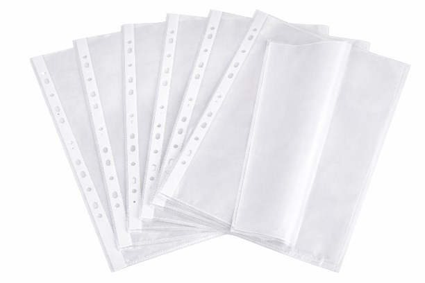 Это прозрачный полиэтиленовый кармашек для бумаг с дырочками сбоку. Он нужен, чтобы хранить документы в больших папках с кольцами, не пробивая дыроколом сами листы.