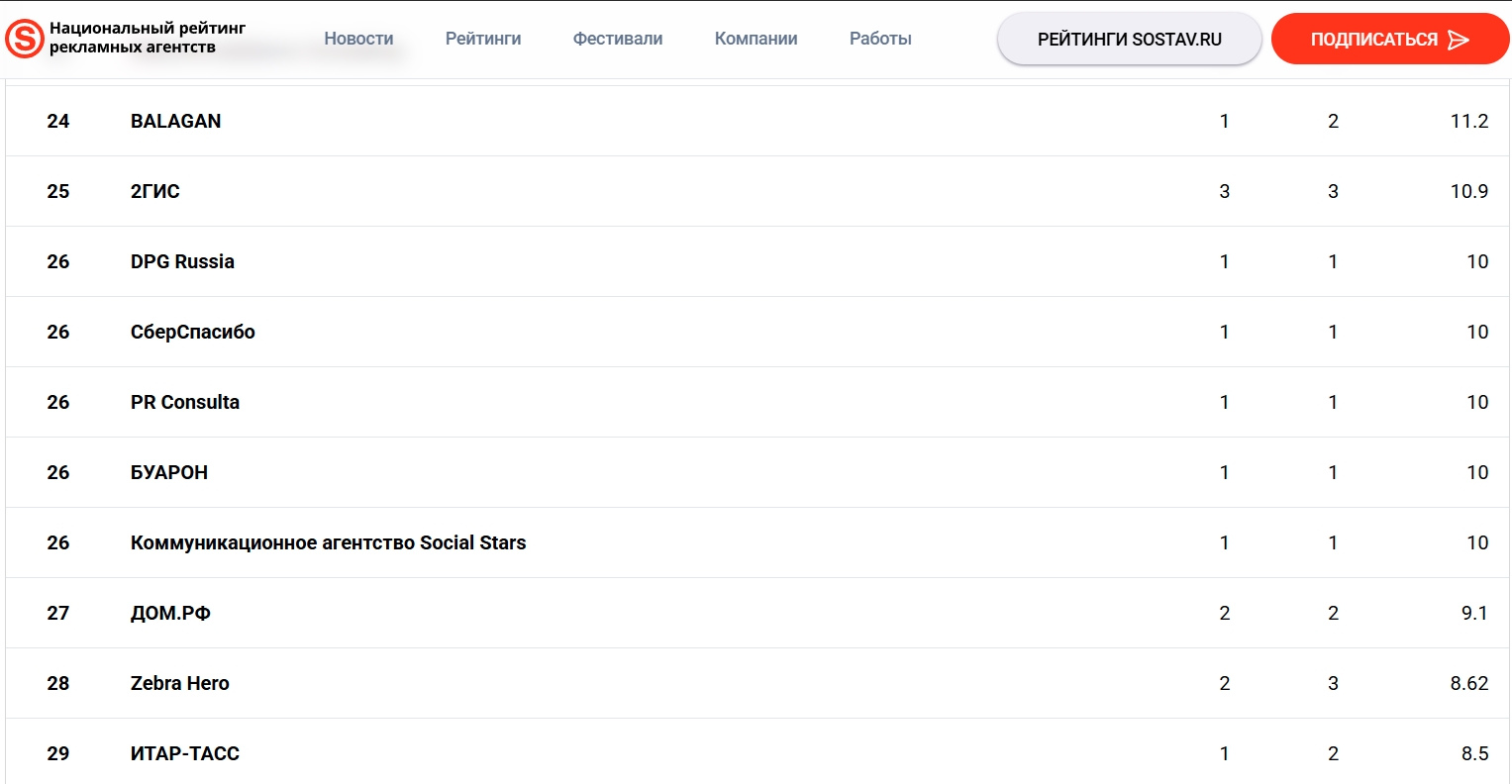 В феврале текущего года Национальный рейтинг рекламных агентств Sostav обнародовал актуальную расстановку сил на российском коммуникационном рынке. Рейтинг давно стал одним из самых авторитетных инструментов оценки профессионального уровня участников индустрии, поскольку его методология намеренно уходит от измерения финансовых потоков в пользу оценки качества интеллектуального продукта. В итоговом списке, объединившем более ста агентств, корпораций и профильных подразделений, ранжированных по сумме баллов за профессиональные награды, нашлось место и для тех, кто работает не на индустриальный шум, а на измеримый результат. В их числе — коммуникационное агентство Social Stars, уверенно замкнувшее 26-ю строчку рейтинга.