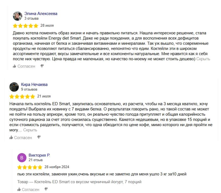 Значительная часть реальных отзывов об NL касаются функционального питания. Разработанные компанией коктейли за много лет приобрели целую армию поклонников. Пользуется популярностью как проверенный временем Energy Diet, так и инновационный ED Smart. Среди главных преимуществ называют отличный состав и эффективное действие. работоспособности. В отзывах потребители отмечают, что после включения коктейлей в рацион они чувствуют себя бодрее, меньше склонны к перекусам и отмечают удобство использования. Некоторые пишут о снижении веса — однако результаты индивидуальны и зависят от множества факторов, включая общий рацион и физическую активность.