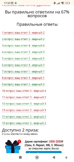 Вы правильно ответили на 67% вопросов