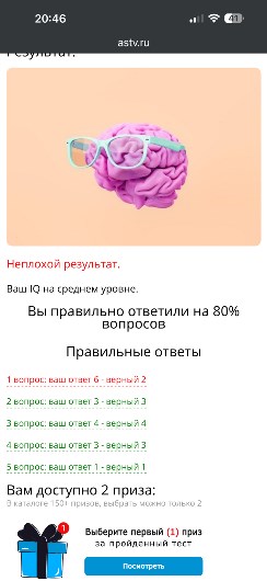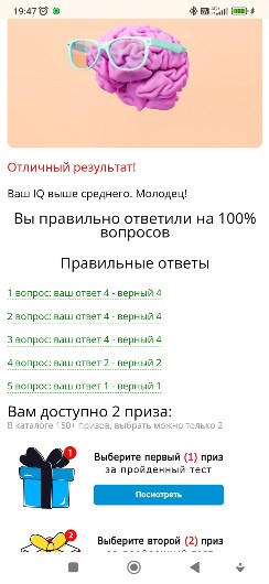 Вы правильно ответили на 100% вопросов"