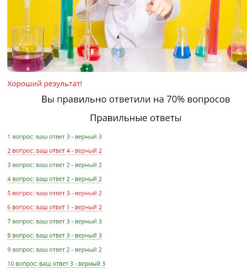 Вы правильно ответили на 70% вопросов"