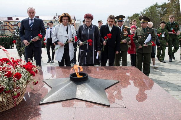 Здесь собравшиеся возложили цветы к Вечному огню, минутой молчания почтили память воинов, павших на полях сражений. В адрес участников спартакиады прозвучали напутствия.