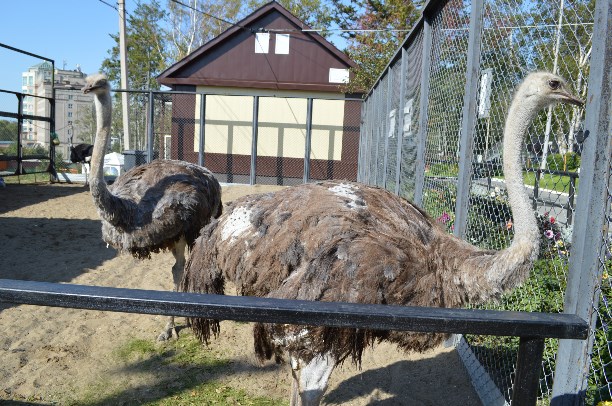 Сурикаты выходят на прогулку в полдень и самые теплые часы проводят на прогулке под открытым небом. Африканские страусы наслаждаются солнечной погодой с утра до самого вечера. Впрочем, эти теплолюбивые гиганты в некоторой степени адаптировались к холодному сахалинскому климату и даже зимой с удовольствием выходят «покупаться» в снегу на непродолжительное время.